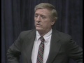 "In New York," WFB begins, "there are not two political parties, as in normal states, but four political parties." The Liberal Party is an old-timer; the Conservative Party had been founded less than a decade earlier, by, for the most part, Republicans concerned about that party's drift to the left. It was on the Conservative Party ticket that Mr. Buckley had run, four years earlier, for Mayor of New York. For this show, Firing Line's Producer, Warren Steibel, had invited representatives of the Liberal Party to appear on this show, but they had declined. In their absence, this is a genial discussion between two old comrades in arms, five years after the defeat of Nelson Rockefeller for the Republican presidential nomination, and of Barry Goldwater for the Presidency itself. WFB: "Mr. Mahoney, would you be willing to describe the circumstances that would bring you to endorse Governor Rockefeller for Governor in 1970?" JDM: "I doubt it would take long. I can't conceive of any, at this point." WFB: "Well, suppose he went to Lourdes, or something? ... Are you the forgiving type?" JDM: "We might under those circumstances, but I don't think that he's the supplicant type ..."